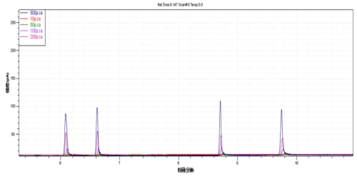 图2. 4种邻苯二甲酸酯规范溶液线性谱图叠加
