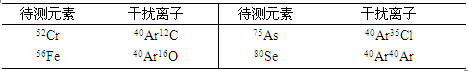 今朝四极杆电感耦合等离子体质谱仪多接纳氩气等离子气,则氩原子与基体离子连系构成▨多原子离子,看待测元素同位素形成搅扰,具体搅扰见表3。设置装备摆设10μg·L-1的Cr(3%HAc介质)、Fe(1%HNO3介质)、As(4%HCl介质)、Se(1%HNO3介质)规范溶液,别离在规范形式及碰撞反映形式下测定其同位素呼应旌旗灯号(图2),尝试成果同时显现56Fe与57Fe呼应强度靠近Fe同位素品貌比,52Cr与53Cr呼应强度靠近Cr同位素品貌比(57As及80Se无适合参考同位素), 由上述可知,ICP-MS 2000E接纳He/H2作为碰撞反映气体,能有用去除氩基相干多原子离子搅扰。